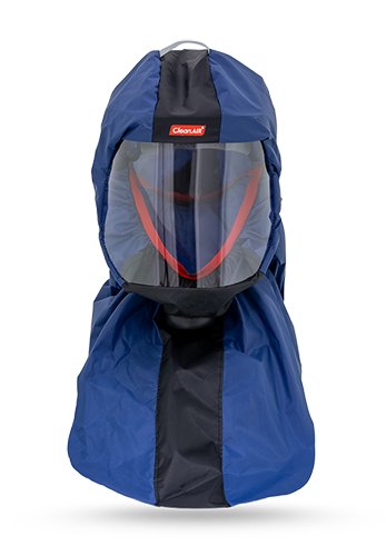 Die CleanAIR lange Schutzhaube CA-2 ist eine leichte Langhaube für Atemschutz und Gesichtsschutz in staubigen Umgebungen. Sie bietet Abdeckung von Kopf, Nacken und Schultern und wird über QuickLOCK™ an CleanAIR Gebläseatemschutz- oder Druckluftsysteme angeschlossen.