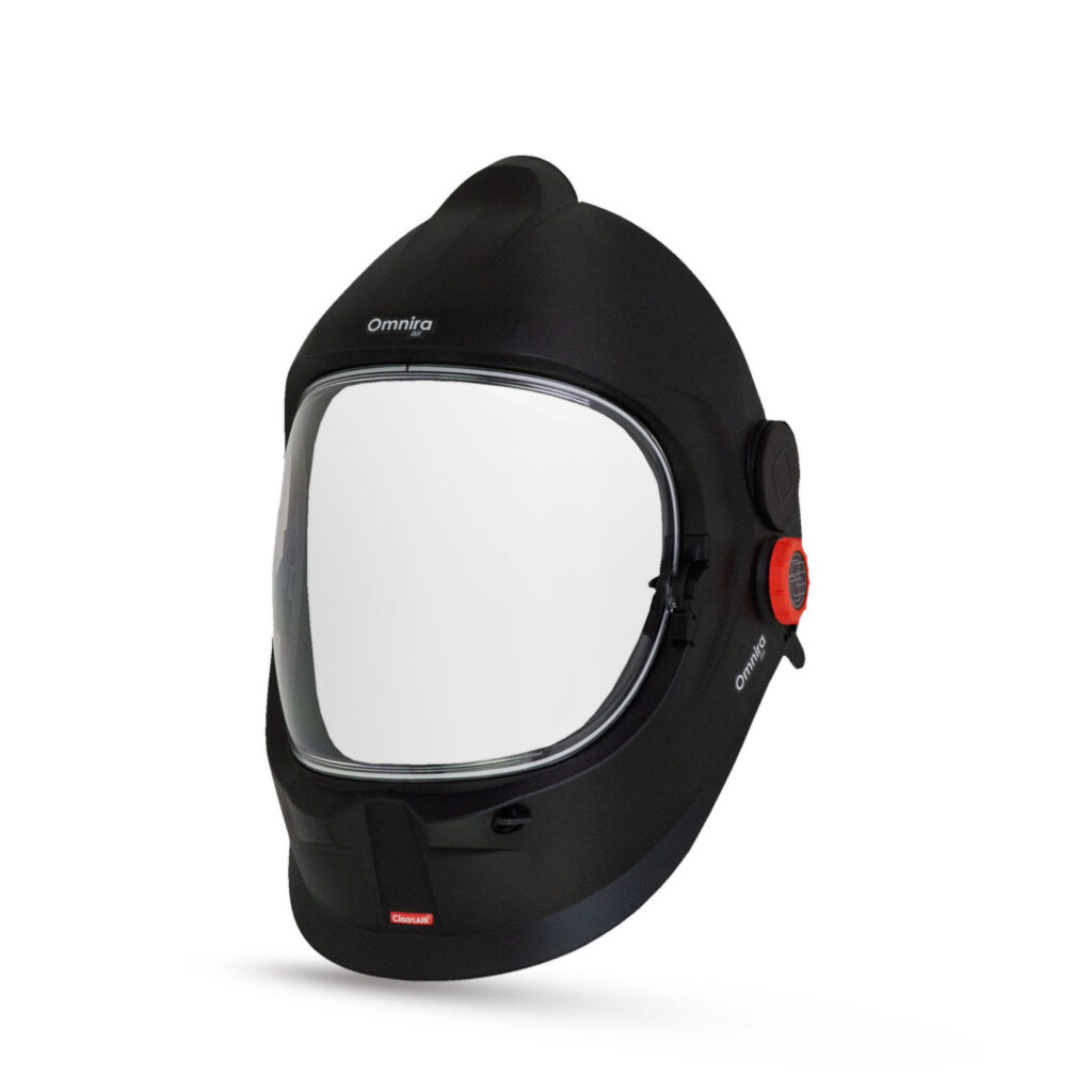 CleanAIR Omnira air – Schleifschild mit integrierter Luftverteilung (Atem-, Augen- und Gesichtsschutz)